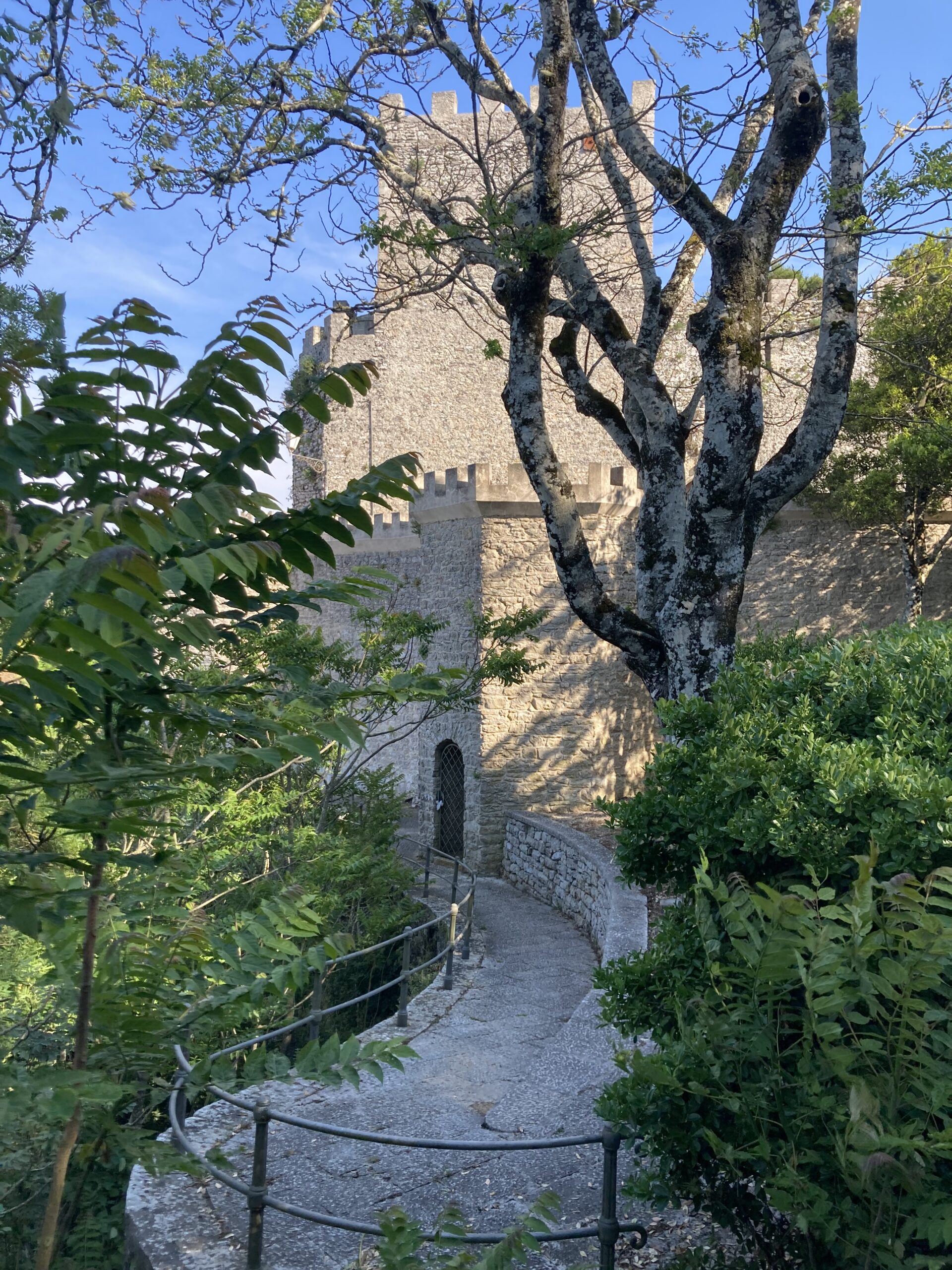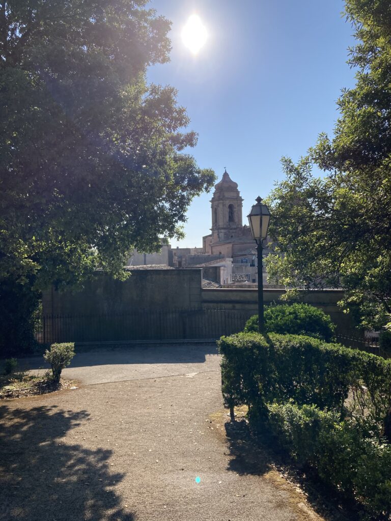 Ein wunderschöner Garten am Stadtrand, umgeben von Pinien, Blumen und Zypressen. Perfekt für einen Spaziergang oder eine Pause mit Aussicht – direkt neben der Burganlage.