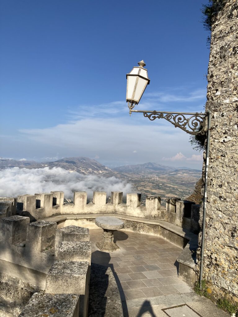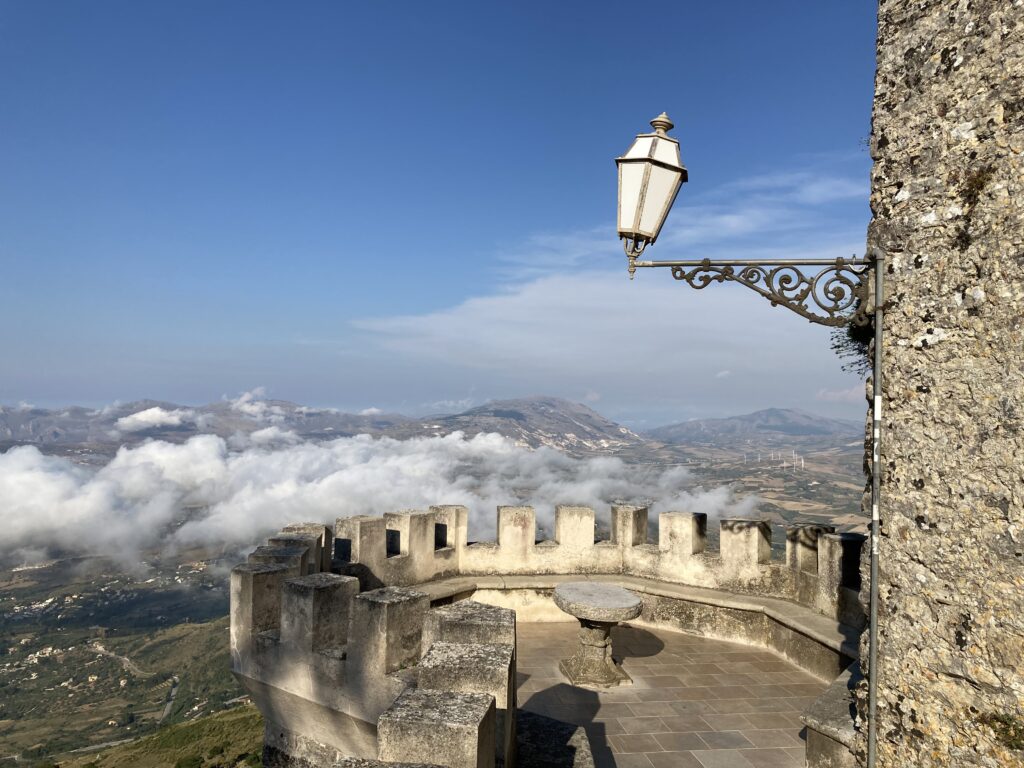 Erice liegt hoch über Trapani – und das merkst du: An klaren Tagen reicht der Blick von den Salzfeldern Trapanis bis zu den Ägadischen Inseln. Die Stadt liegt oft in Wolken, was sie besonders mystisch macht. Und wenn die Nebel aufreißen, eröffnet sich ein Panorama, das du nicht so schnell vergisst.