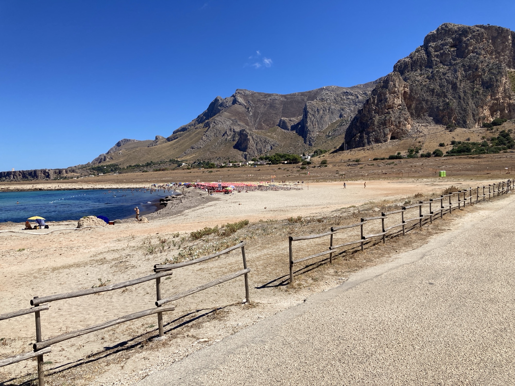 Die Baia Santa Margherita liegt eingebettet zwischen markanten Felsen und dem tiefblauen, glasklaren Wasser des Mittelmeers. Der imposante Monte Cofano wacht über die Bucht und verleiht dem Ort eine fast mystische Kulisse. Die Natur hier ist rau und gleichzeitig wunderschön: trockene, sonnenverbrannte Hügel, salzige Meeresluft und der ununterbrochene Rhythmus der Wellen.