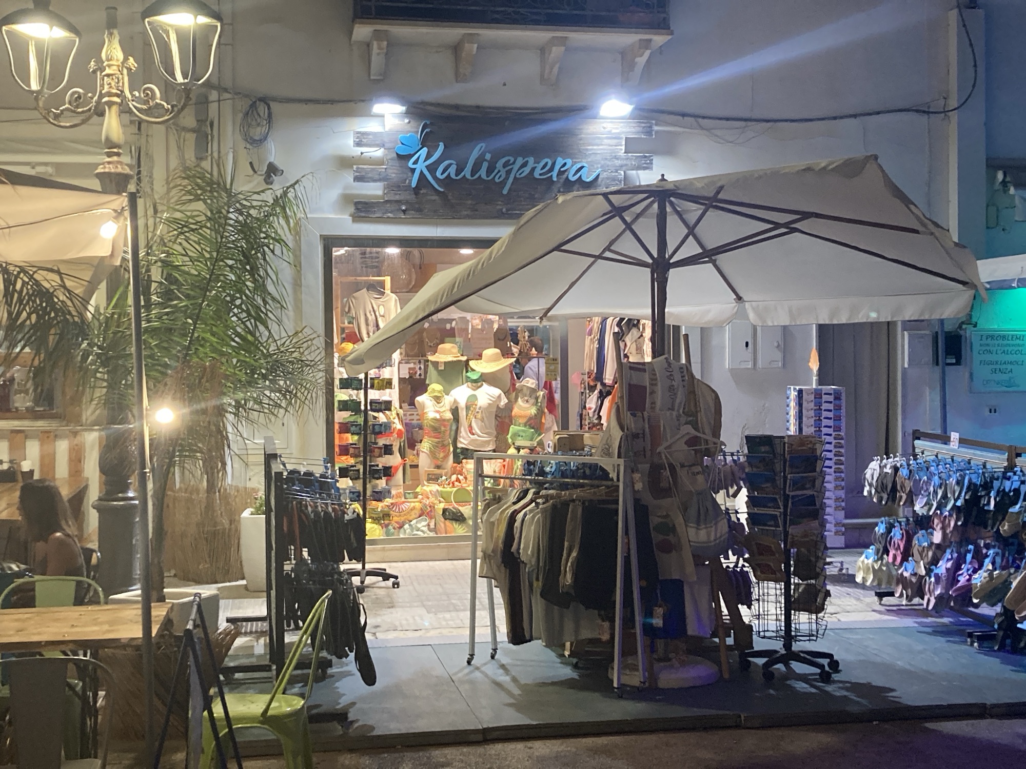 Mit seinem klangvollen Namen „Kalispera“ – griechisch für „Guten Abend“ – bringt dieses Geschäft mediterranes Flair in die Einkaufsstraßen von San Vito Lo Capo. Zentral in der Via Savoia 10 gelegen, lädt Kalispera Mode zu einem entspannten Shoppingerlebnis ein, bei dem Stil, Individualität und Urlaubsatmosphäre perfekt zusammenspielen.
