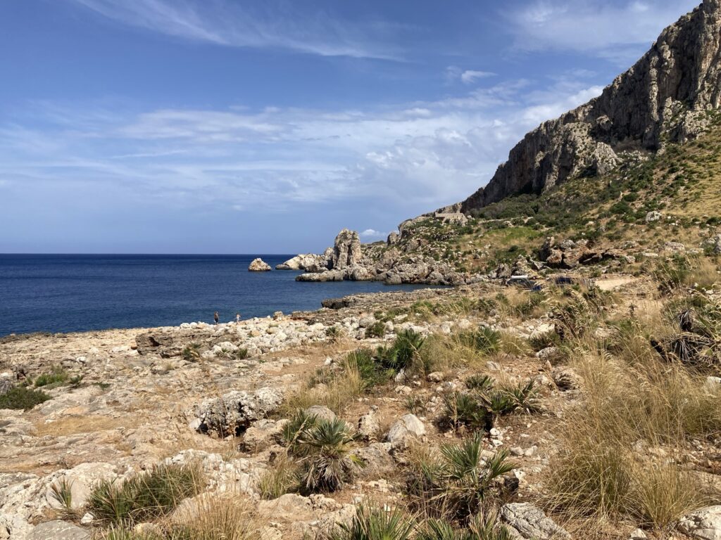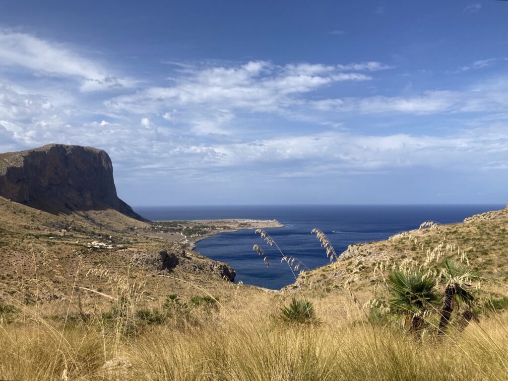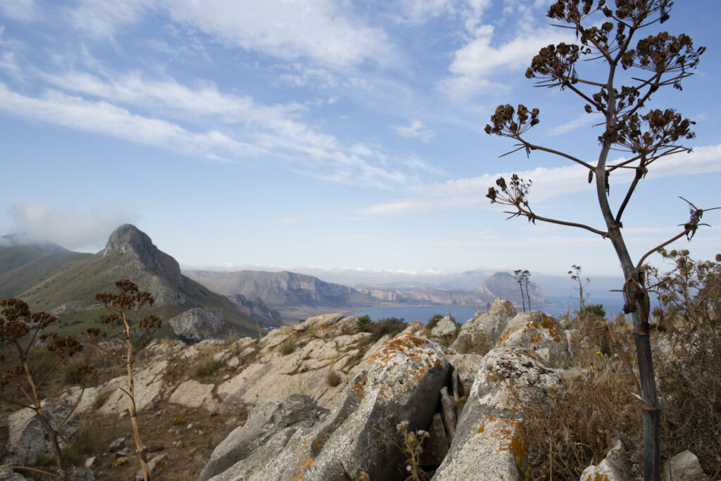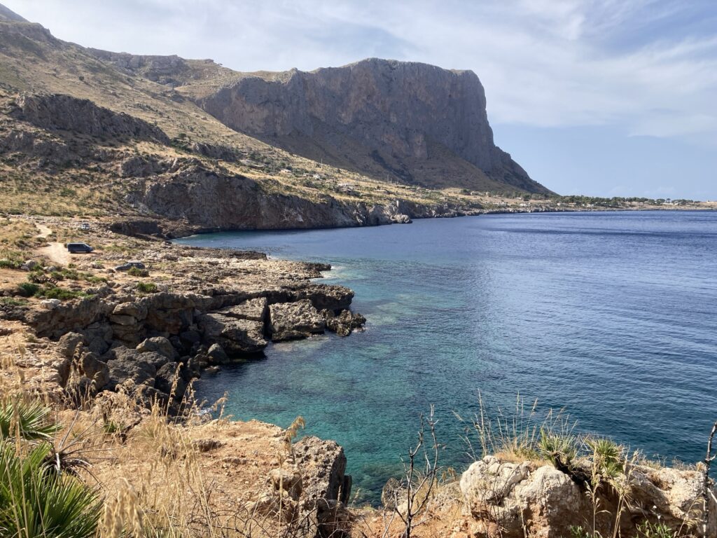 Zwischen diesen Bergwelten erstreckt sich die Riserva Naturale dello Zingaro, eine der eindrucksvollsten Naturlandschaften Siziliens. Sanfte Höhenzüge, steile Klippen und versteckte Pfade verbinden sich hier zu einer Landschaft, in der Berge und Meer nahtlos ineinander übergehen. Die Aussichtspunkte entlang der Wege eröffnen immer wieder weite Blicke über die Küste, das offene Meer und die umliegenden Felsformationen.